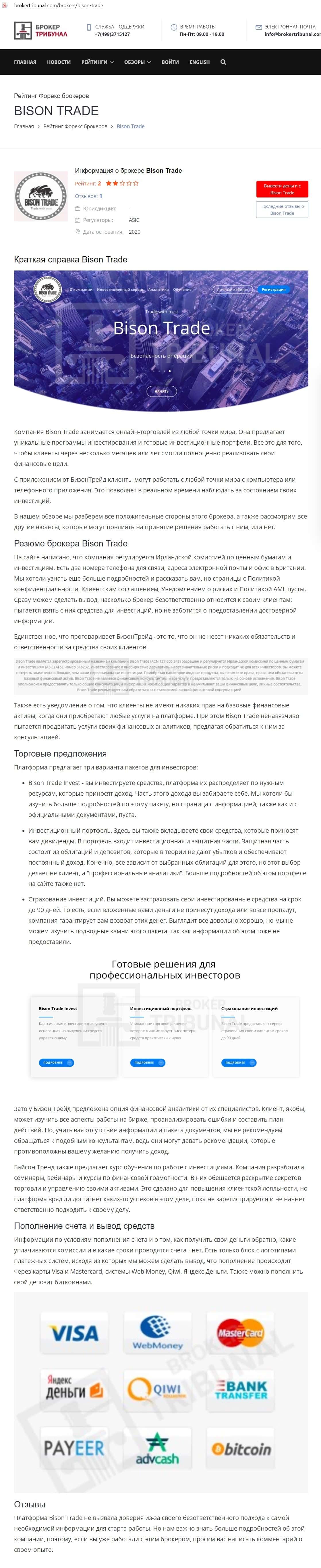 Сайт Брокертрибунал пишет в своей статье о мошенниках Бизон Трейд, что они врут людям о своей лицензии, документов у них нет, никакой это не брокер, а обычный лохотрон.