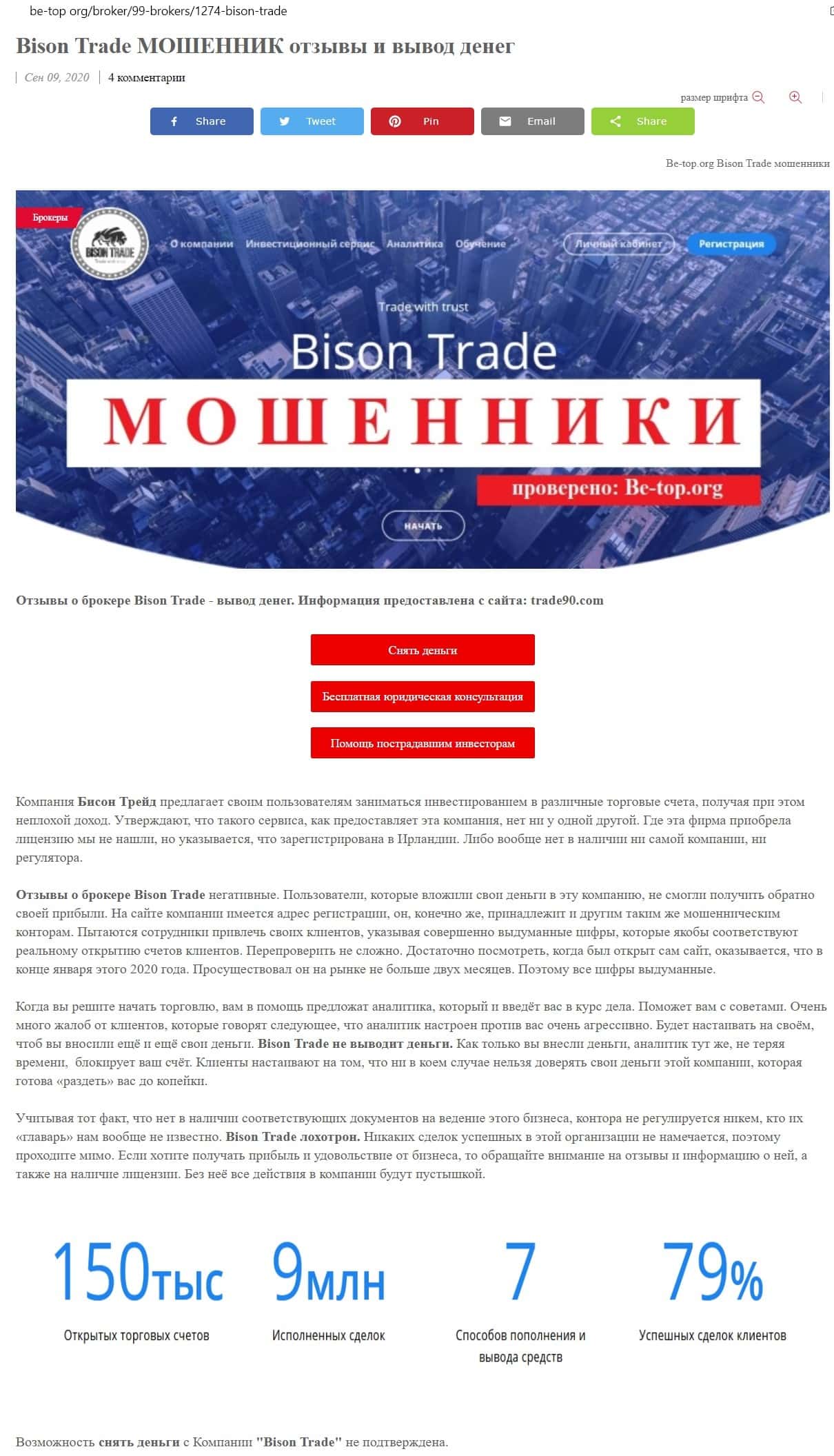 Статья на сайте be-top org рассказывает, что нельзя связываться с такими явными мошенниками, как Бизон Трейд, которые не выплачивают деньги своим клиентам.