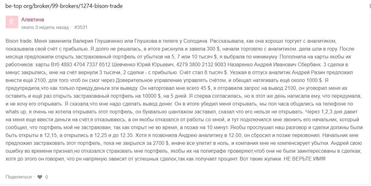 - Отзывы обманутых мошенниками Бизон Трейд клиентов