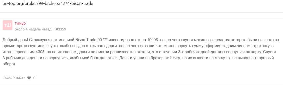Отзывы обманутых мошенниками Бизон Трейд клиентов