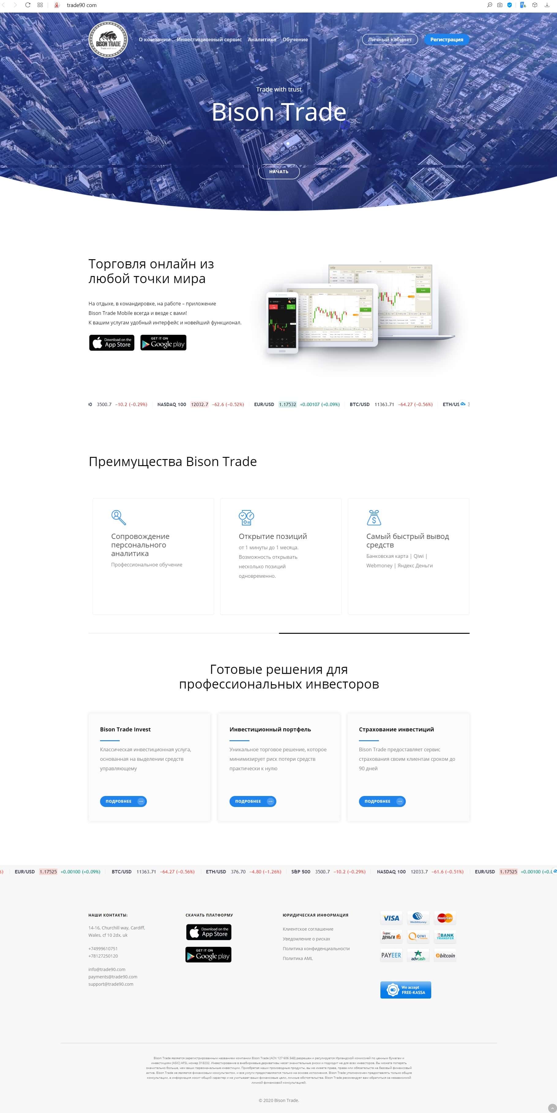 trade90 com - официальный сайт мошеннической конторы Бизон Трейд