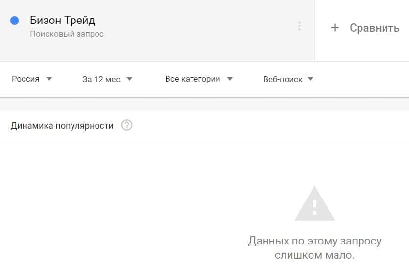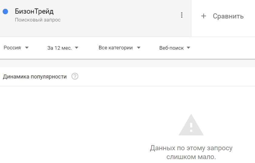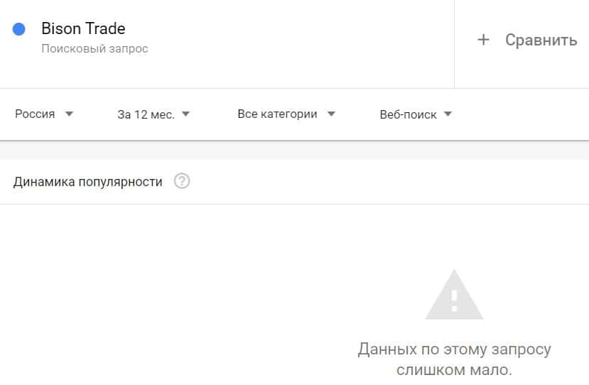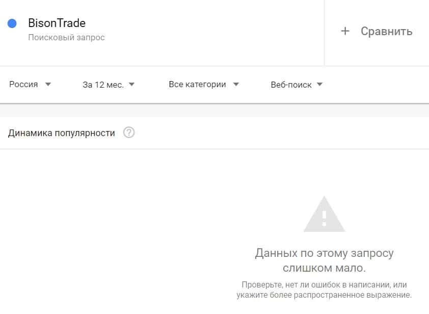 Посмотрим, насколько популярно название бренда "BisonTrade", написанное на английском языке. Данных по этому запросу нет, так как никто не искал этот бренд в Гугл.