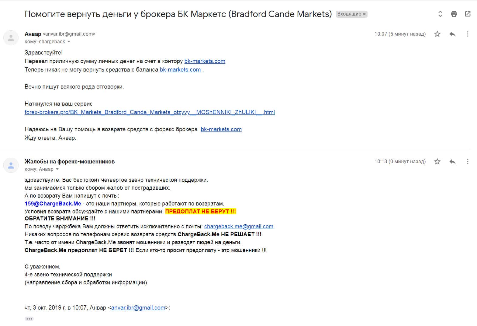 Поводом для написания данной статьи послужило обращение к нам обманутого инвестора этой брокерской конторы. Ниже мы приводим жалобу пользователя брокерской конторы Бредфорд Кенде Маркетс, обманувшей и не вернувшей денежные сбережения Анвара.