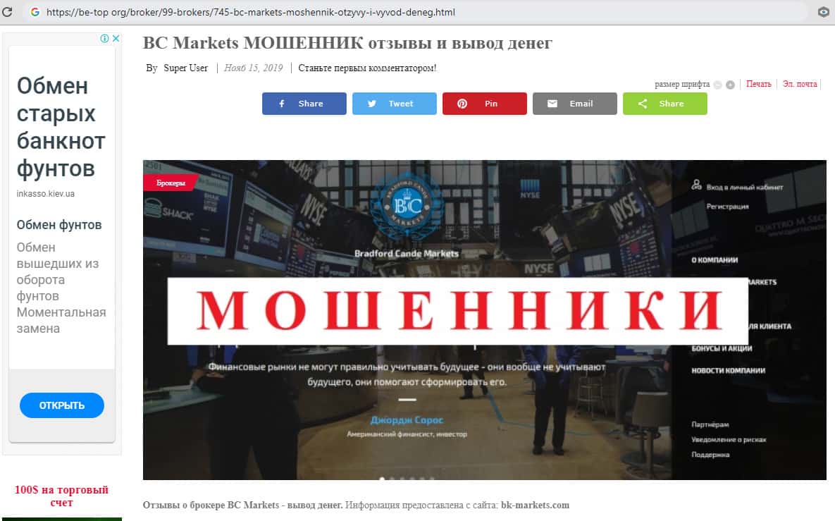 Краткий обзор и точный вывод о деятельности конторы БК Маркетс на портале be-top org