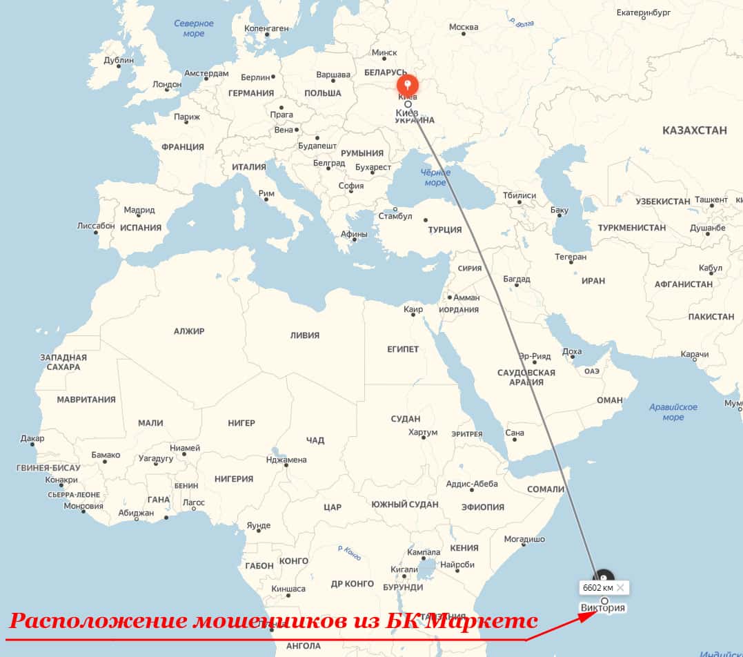 По всем возникающим у посетителей портала БК Маркетс вопросам мошенники предлагают обращаться на два адреса электронной почты: в отдел технической поддержки и отдел по работе с клиентами. Кого не устраивает общение по электронной почте, тем предлагается проследовать на Сейшельские острова и непосредственно посетить офис компании. Карта прилагается...