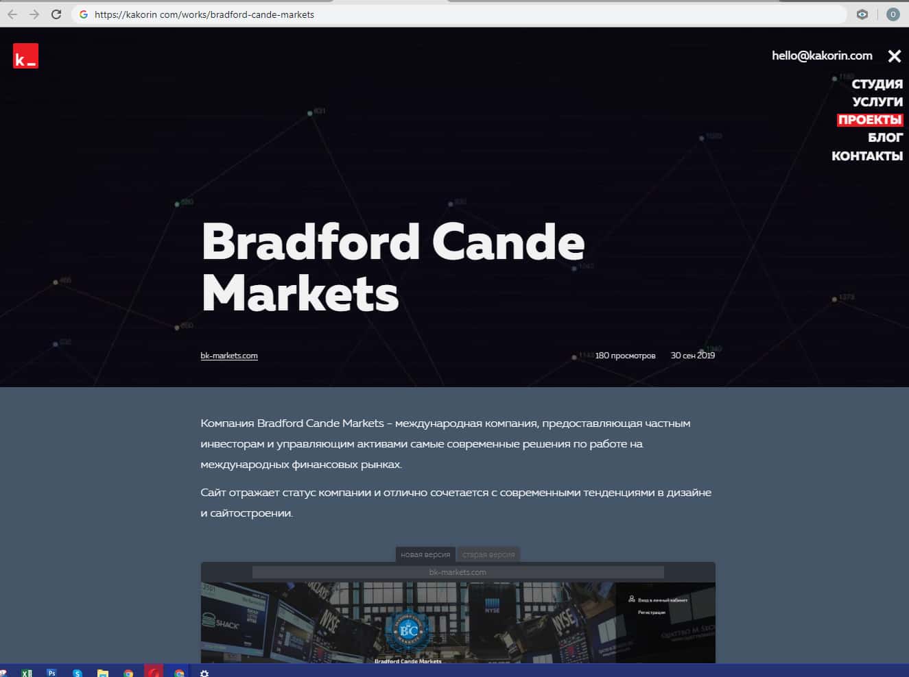 - Автором портала Bradford Cande Markets является компания из Санкт-Петербурга