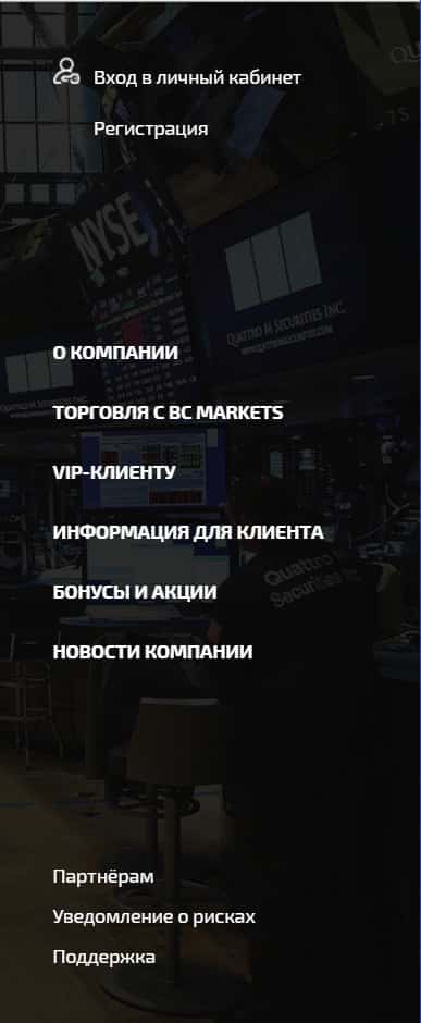 Основная часть портала БК Маркетс начинается с раздела "о себе любимых". В нём на фоне высотных зданий бизнес-центров аферисты попытаются вложить в головы наивных посетителей о серьёзности, грандиозности и добросовестности своей компании и высоких перспективах своих трейдеров.
