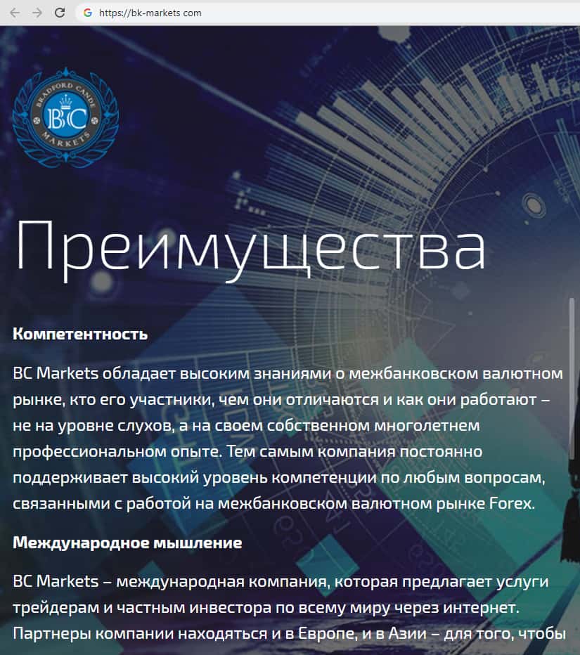 - Бессовестные заявления мошенников из Bradford Cande Markets о своих преимуществах