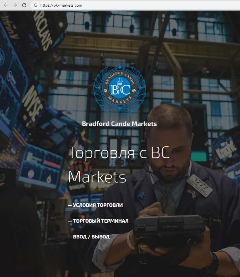 Bradford Cande Markets - аферисты и мошенники! Завоёвывая доверие своих клиентов, жулики из БК Маркетс заставляют трейдеров и инвесторов оставлять свои сбережения на своей площадке. Обещая условия для легких заработков и сытой жизни, аферисты в наглую обворовывают своих клиентов. Не поддавайтесь на лживые обещания аферистов из БК Маркетс!