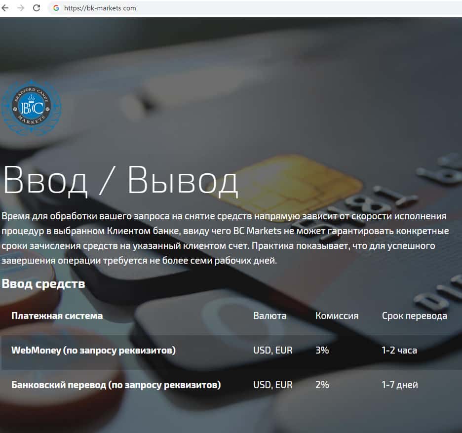 Особенности ввода и вывода денежных средств на торговой площадке Bradford Cande Markets