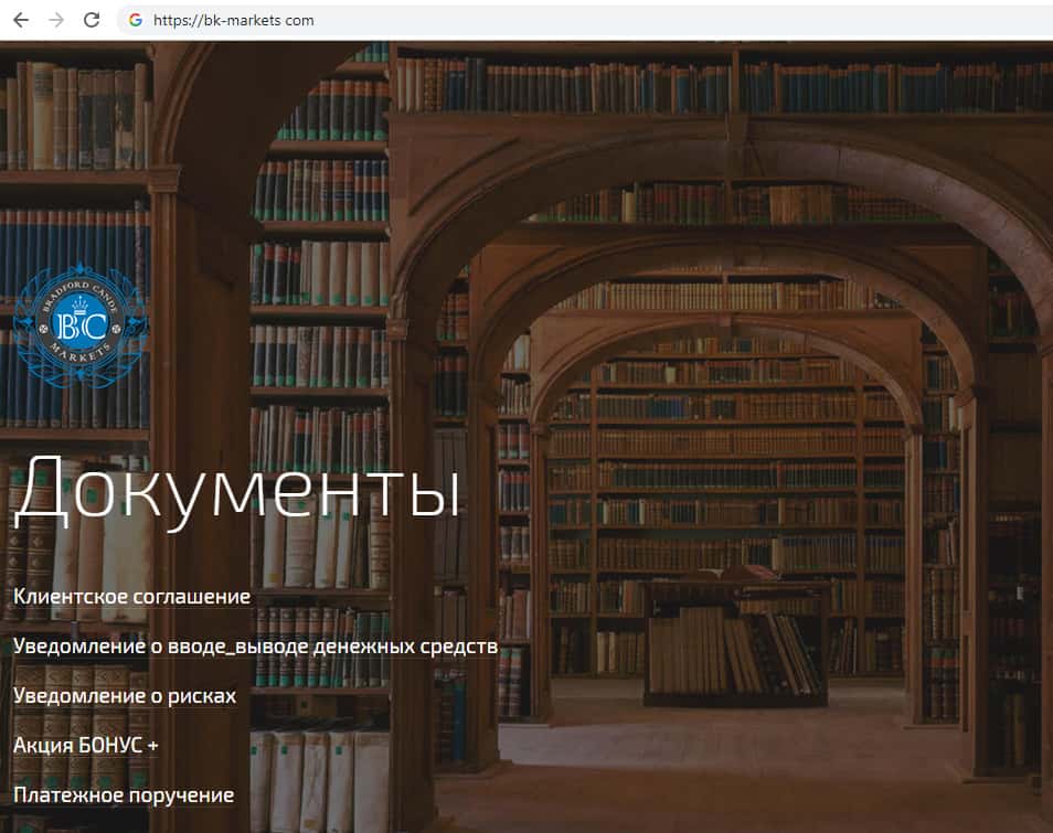 - Разделы портала брокера Bradford Cande Markets непосредственно посвященные получению денежных средств мошенниками