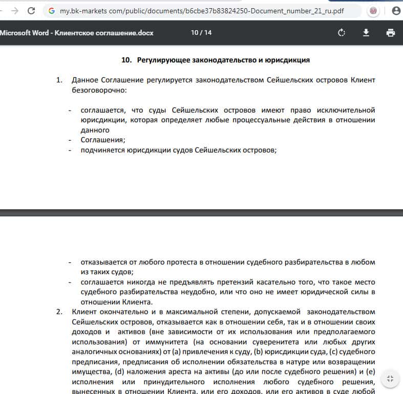 А в случае несогласия, клиент может обжаловать действия компании, естественно, в судах Сейшельских островов, и отказывается от рассмотрения дел в других судах и не имеет никаких претензий к месту проведения судов. Вот, кому не лень, пожалуйте на Сейшелы в поисках истины и следов пребывания мошенников из БК Маркетс. А вдруг, повезёт!