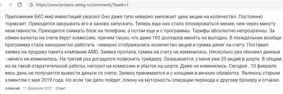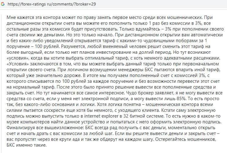 На следующем изображении можно прочесть подробный негативный отзыв постоянного клиента форекс кухни BCS Markets, который в шоке находится от ужасных условий для людей.