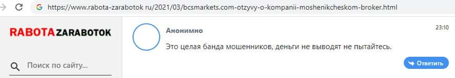 Клиент на нижерасположенном скриншоте указал на то, что у данной шараги BCS Markets также существует явная проблема с выводом средств; ворюги решили наживиться на трейдерах.