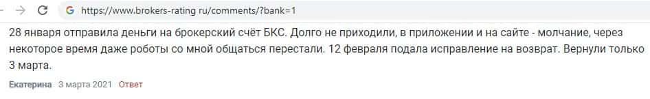 Клиентка поведала, что отправив деньги на свой брокерский счет на платформе жулья BCS Markets, средства долго не поступали, поддержка никак не реагировала и деньги пришли позже.
