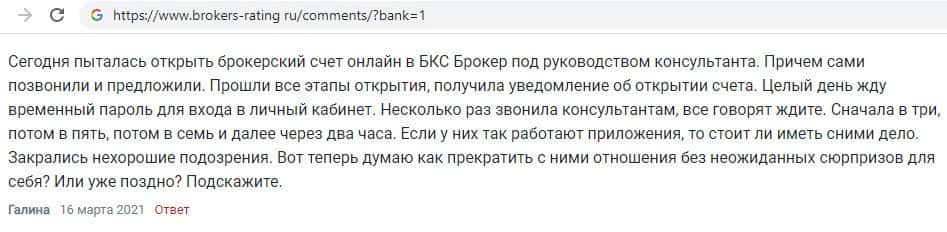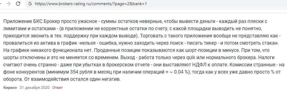Далее следует комментарий человека о том, что, кроме требований денег, гнусный брокер БКС Маркетс ни на что не способен: после открытия счета сотрудники отморозились.