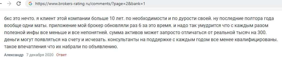 Парень сообщил, что работая 10-ть лет с аферным центром БКС Маркетс, окончательно разочаровался, поскольку сотрудники набраны, как будто по объявлению. Ноль помощи.