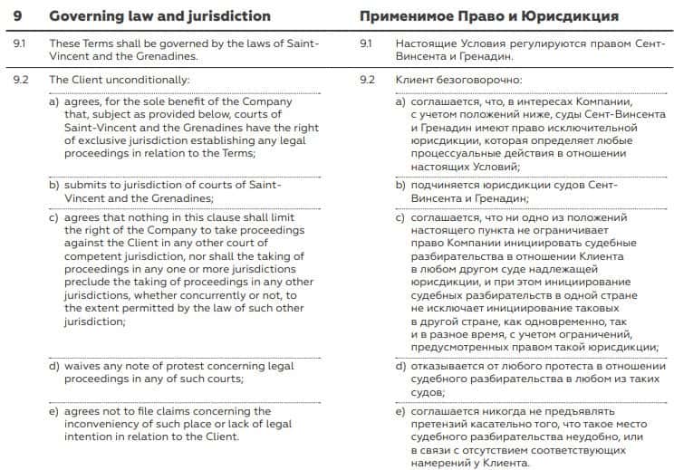 В пункте 9.2. договора указано, что трейдеры должны согласиться на уйму ущемлений своих прав, например отказаться от возможности предъявить иск в судебном порядке к ворью.