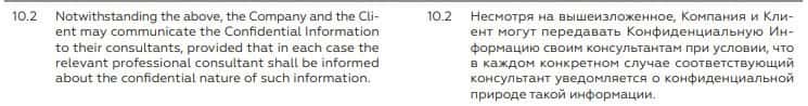 Согласно пункту 10.2. фиктивный брокер БКС Маркетс имеет право передавать конфиденциальную информацию своим консультантам. А где гарантии безопасности клиентов?