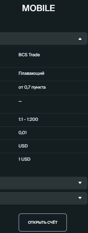 "MOBILE" - этот тип счета предполагает плавающий спред EUR/USD от 0.7 пункта, персональную торговую платформу BCS Trade. Но это все вызывает веские подозрения к ворью.