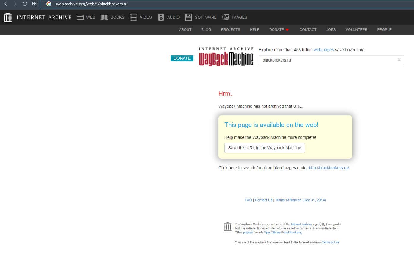 Данные о ресурсе BlackBrokers Ru с веб-архива