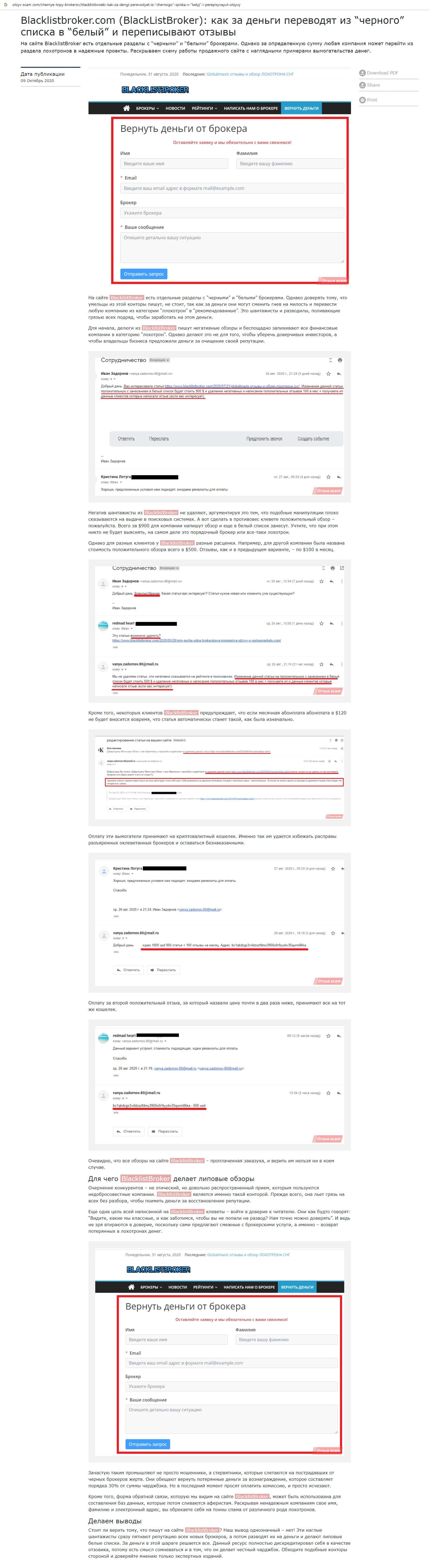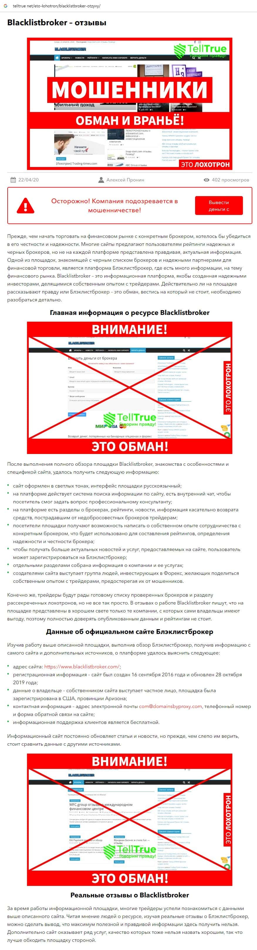 Отзывы о скам-конторе Блек Лист Брокер, ныне присутствующие в сети