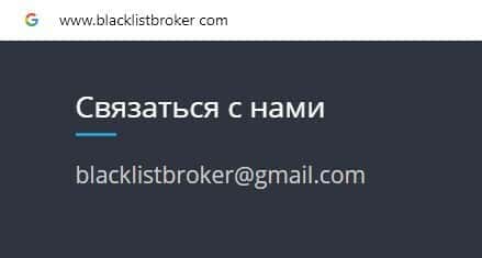 - Контактная информация на веб-ресурсе жульнической конторе BlackListBroker