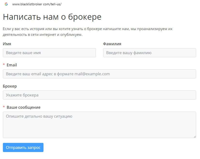 Если бессовестные кидалы Блек Лист Брокерс Вас кинули или пытались это сделать, то тогда сообщите Ваш e-mail ниже, и мы обязательно с Вами выйдем на контакт по электронной почте.