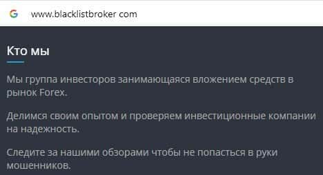 Обзор главной страницы мошеннической конторы BlackListBroker