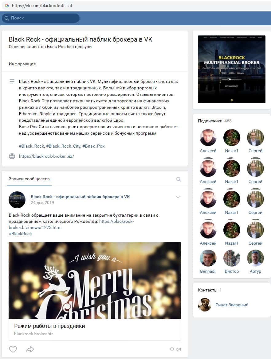 - Жулики Блек Рок Брокер зарегистрировались с российской соц сети Вконтакте