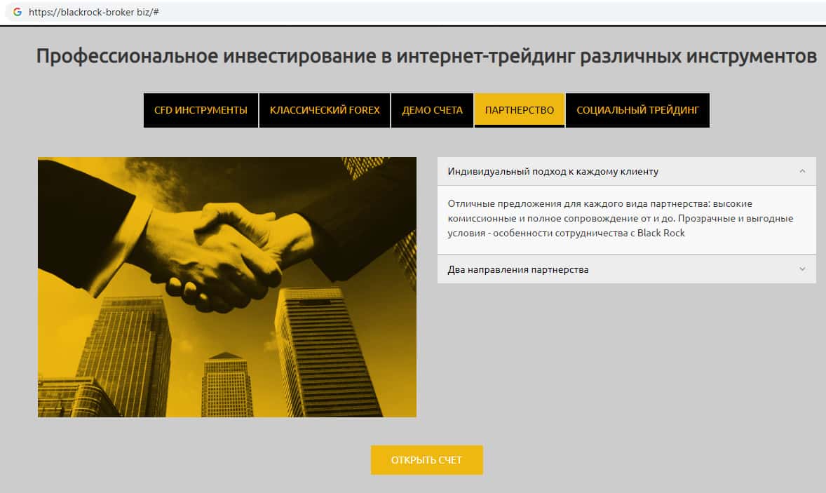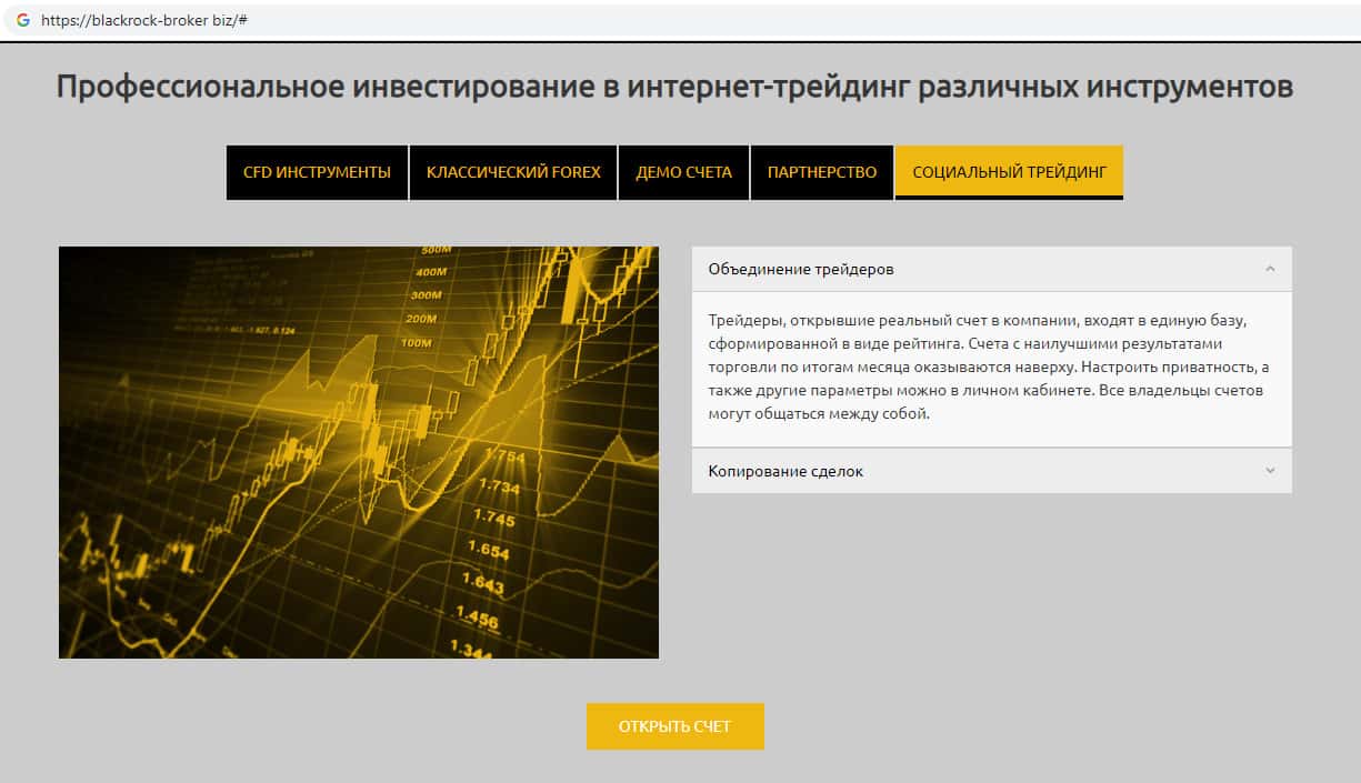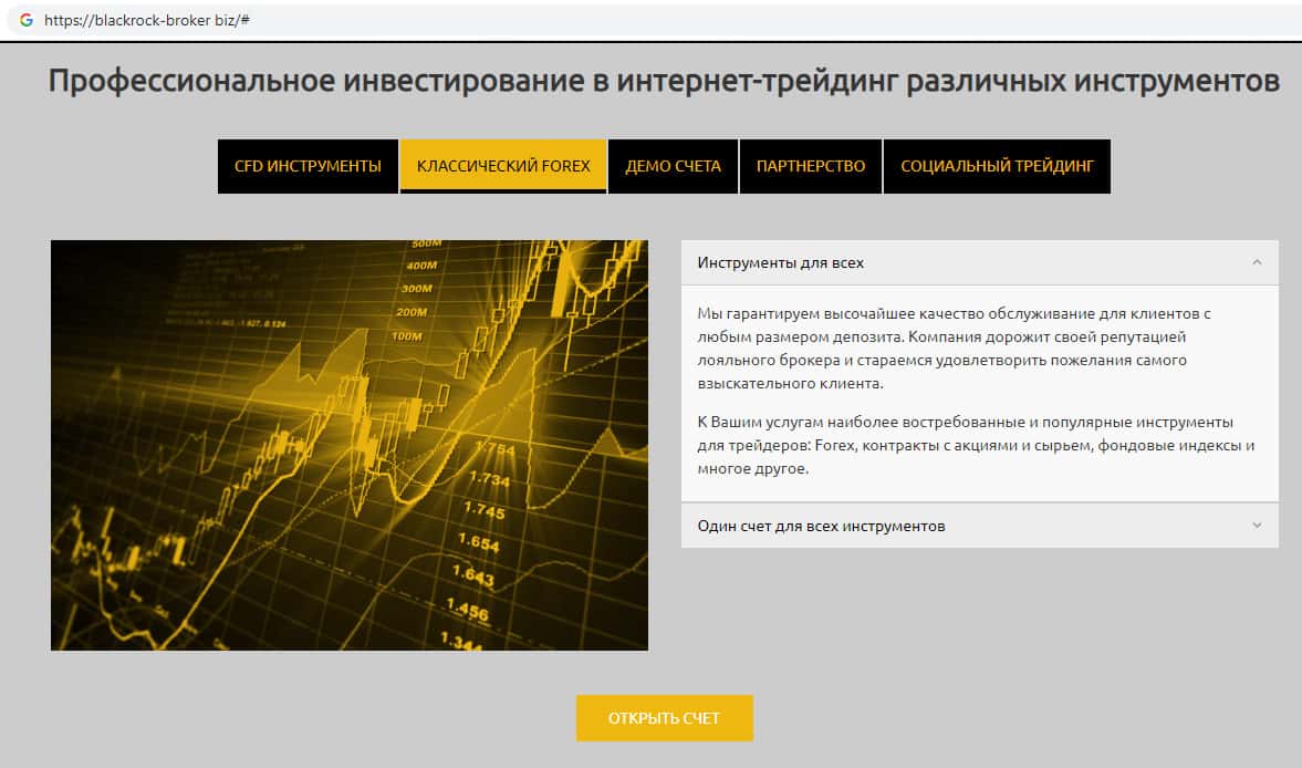 Обзор официального онлайн-ресурса мошеннической организации Блек Рок Брокер