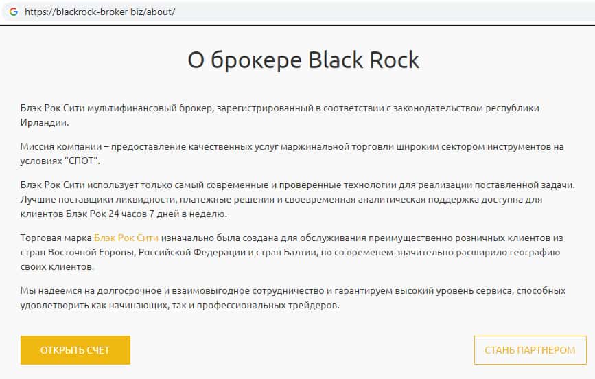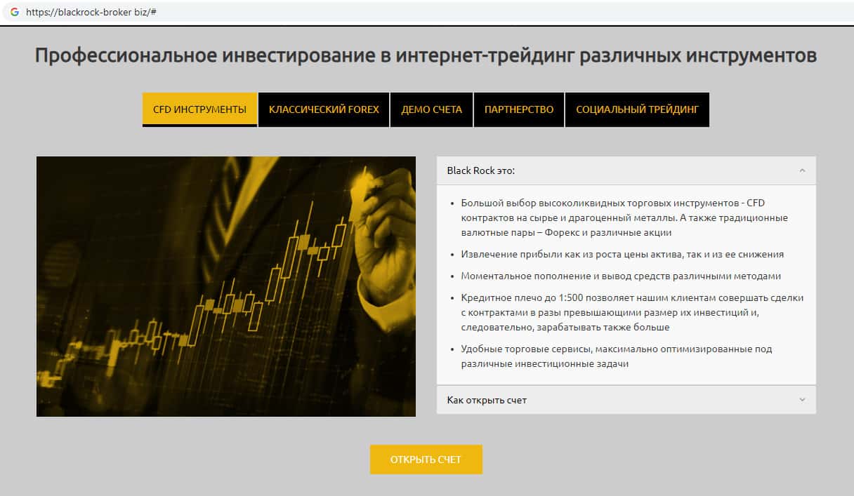 - Обзор официального онлайн-ресурса мошеннической организации Блек Рок Брокер