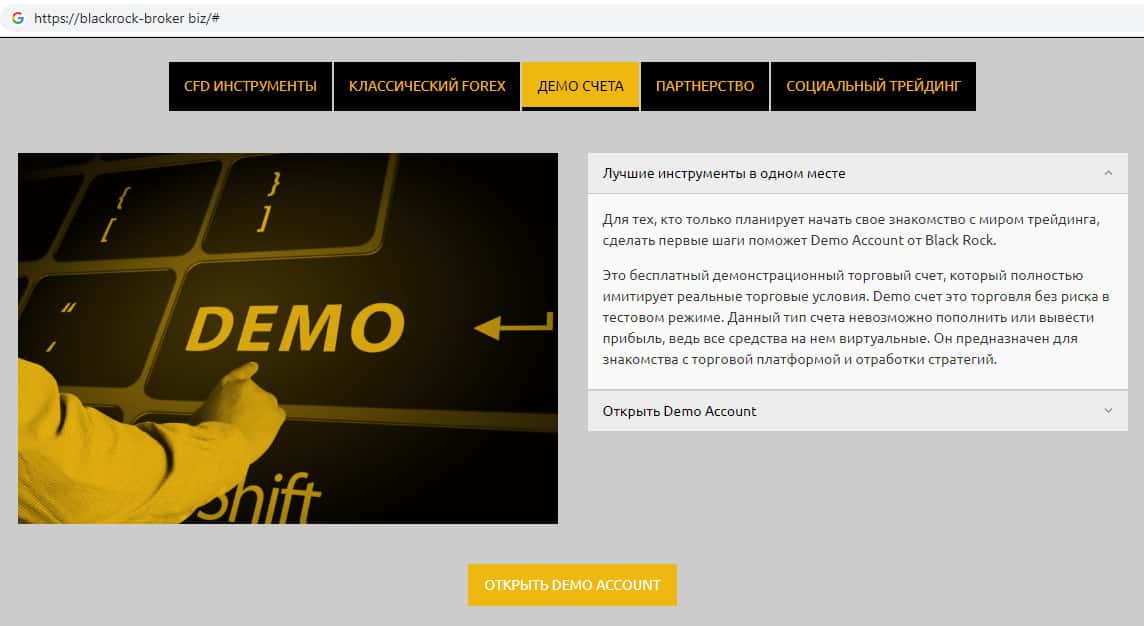 - Шулера BlackRock-Broker Biz заманивают на свой фейковый сайт возможностью торговли на демо-счете