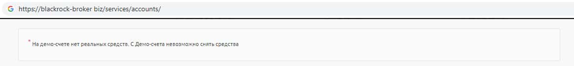 Несмотря на то, что торговля на демо-счете скам-организации BlackRock-Broker Biz происходит только после оплаты аккаунта, снять свои денежные средства окажется невозможным, поскольку это всего навсего очередная ловушка для тех, кто верит в прибыль из неоткуда. Не регистрируйтесь на сайте псевдо-брокерской конторы Блек Рок Брокер !!!