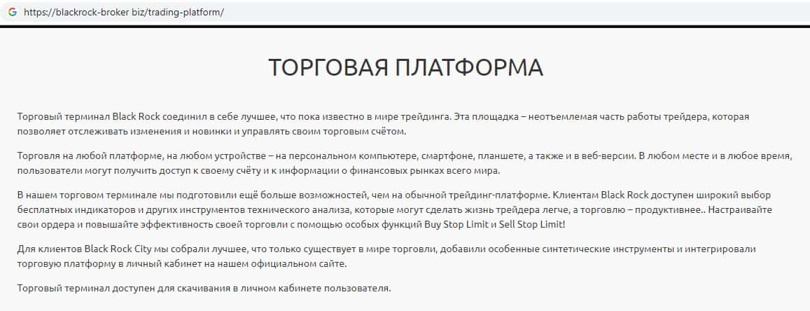 Жулики Блек Рок Брокер предоставляют не правдивую информацию о торговых инструментах