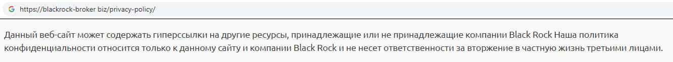 - Политика конфиденциальности мошеннической организации Блек Рок Брокер