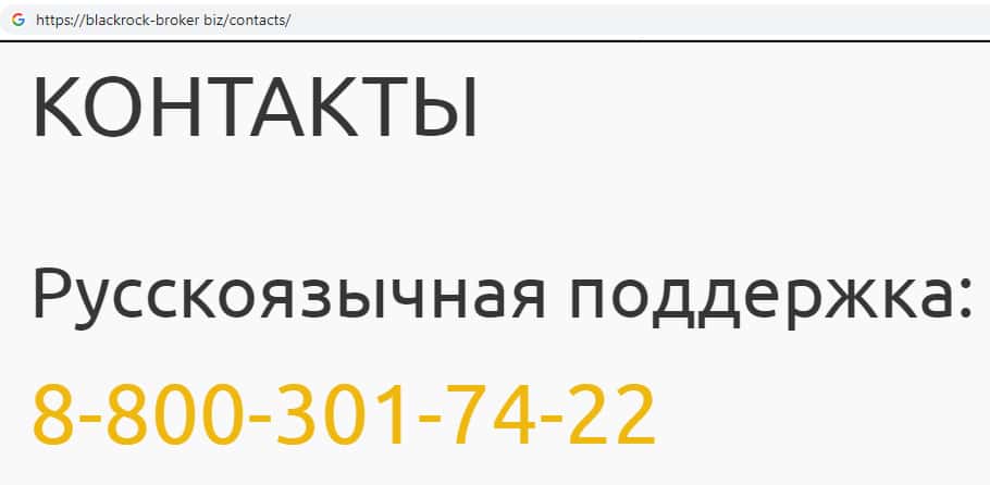 Так же представители псевдо-брокерской организации Блек Рок Брокер на своем официальном сайте оставили номер контактного телефона +88003017422, где якобы можно получить русскоязычную поддержку. На самом деле жулики достаточно часто меняют номера телефона, не указывая его на своем дырявом онлайн-ресурсе.