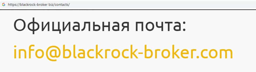 - адрес электронной почты брокерской конторы BlackRock-Broker Biz: info@blackrock-broker com