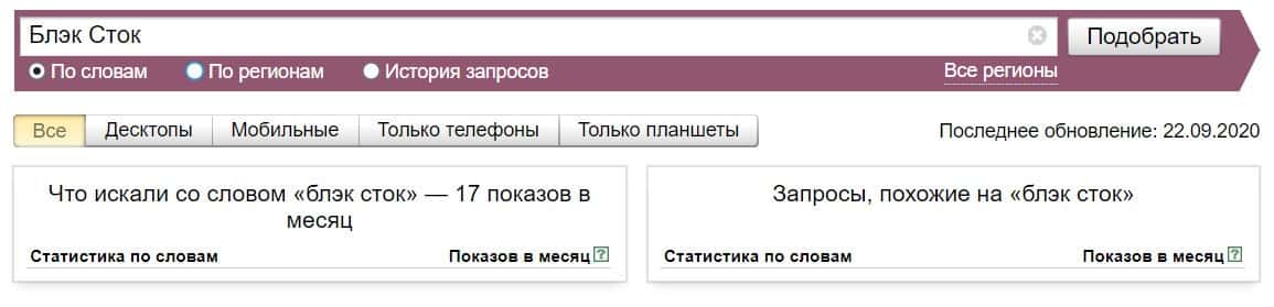 Посмотрим, сколько раз люди искали название бренда "Блэк Сток" на русском языке с пробелом: результат 17 показов.