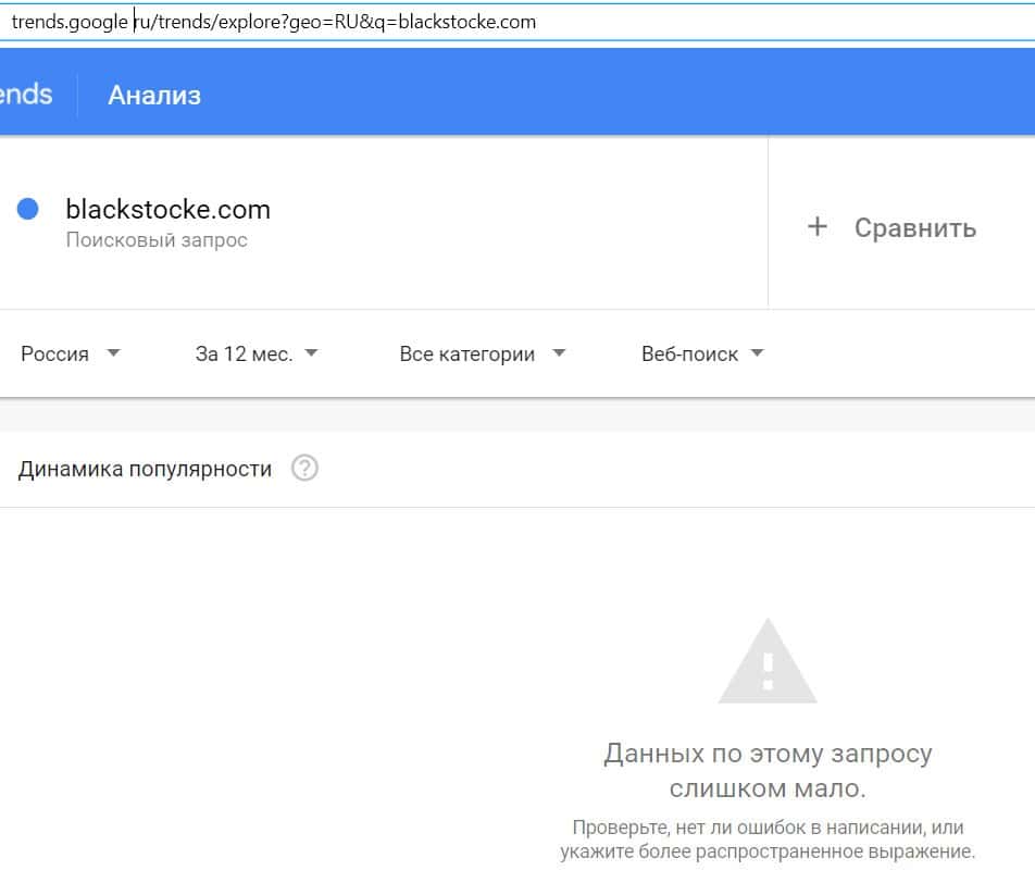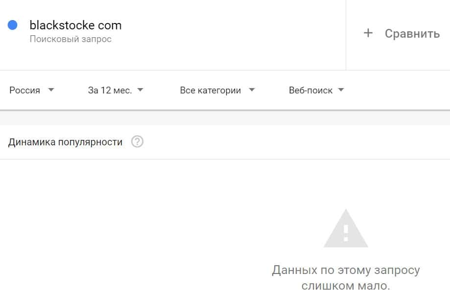 Количество запросов по домену "blackstocke com", вбитого в поисковик Гугл без точки, с пробелом, также происходило крайне мало раз.