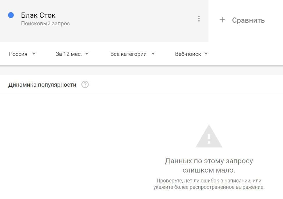 Посмотрим, насколько популярно название бренда "BlackStocke", написанное на английском языке. Данных по этому запросу нет, так как никто не искал этот бренд в Гугл.