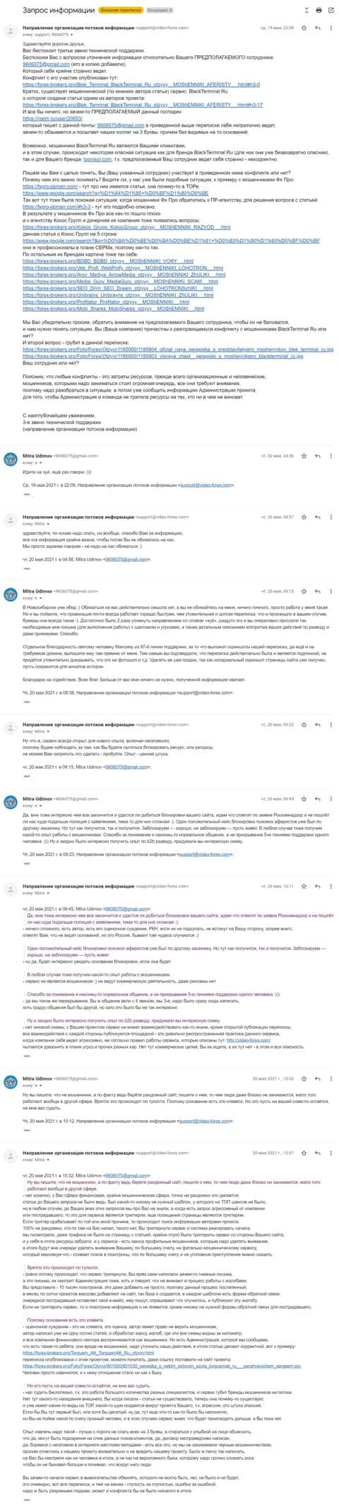 Официальная переписка с мошенниками Блак Терминал Ру