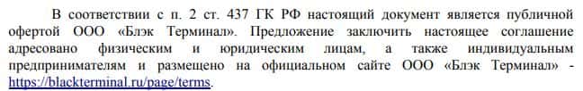 - Клиентское соглашение аферистов Блэк Терминал