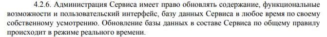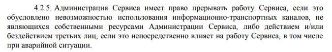 Дале представлена информация из соглашения конторы Блэк Терминал и там указано, что они в любой момент имеют право прервать работу своего сервиса даже в ущерб клиента.
