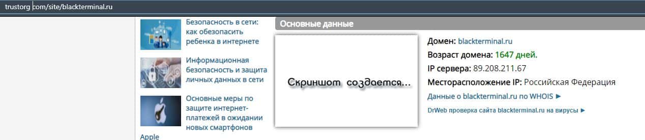 О возрасте домена сайта BlackTerminal Ru
