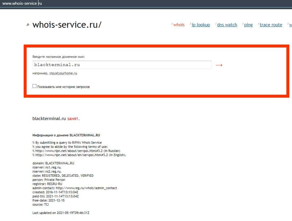 Кто владеет доменом портала BlackTerminal Ru?