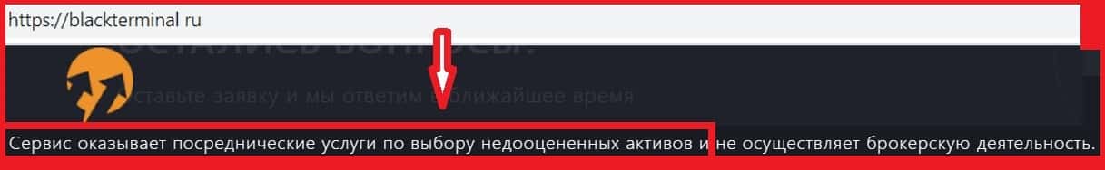 - Блэк Терминал незаконно предоставляет посреднические услуги в сфере инвестирования