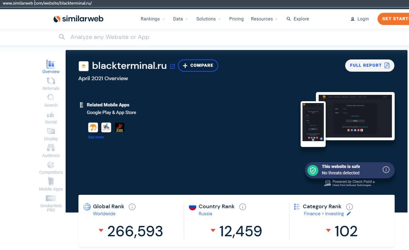 Данные по трафику веб-портала BlackTerminal Ru