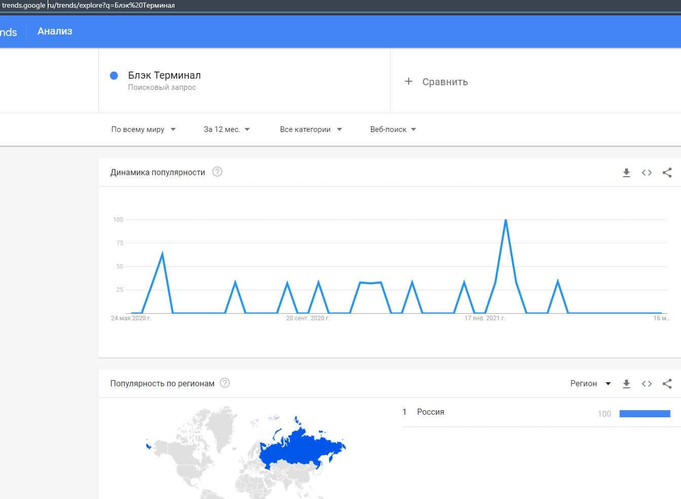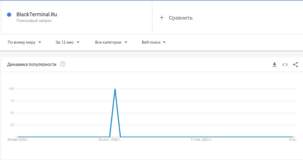 Немного другая ситуация и с обычным сайтом "BlackTerminal.Ru", данных о котором в запросах Гугл Трендс было немного обнаружено.