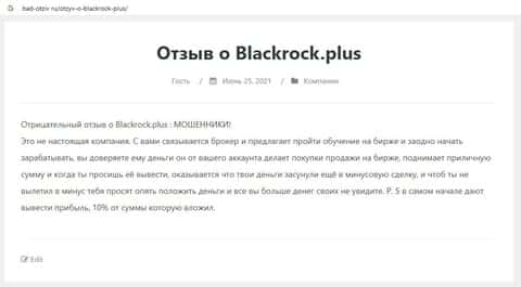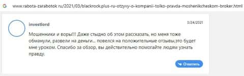 Отзывы о скам-брокере Блэк Рок Плюс, ныне присутствующие в сети-интернет